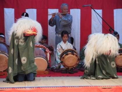 9月23日(祝)、烏山区民センター前広場の烏山神社祭礼行事に、千歳民族資料保存会「給田小学校 子どもばやし」の皆さんが出演しました。
