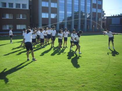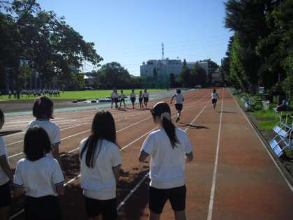 9月27日(金)朝、6年生は、連合運動会の練習で、日本女子体育大学のグランドへ出かけました。