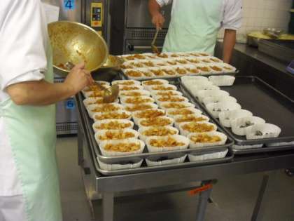 献立は、『黒砂糖パン、ナスのミートグラタン、コンソメスープ、牛乳、くだもの』です。ナスの色の成分は、ナスニンと呼ばれており、老化や病気の原因になる活性酵素から体を守ってくれる働きがあります。