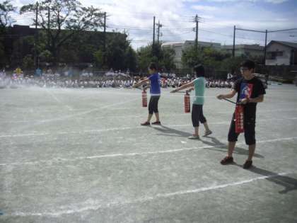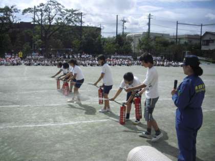 6年生と教職員の代表が、消火器を使っての練習をしました。