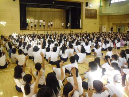 10月10日(木)の朝の集会は、集会委員による開校記念日クイズでした。