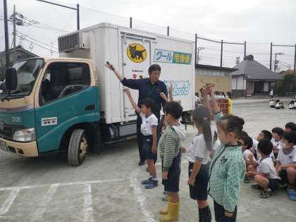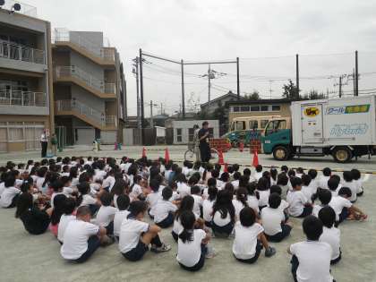PTAの校外委員の皆様に企画していただき、運送会社の協力を得ての教室です。