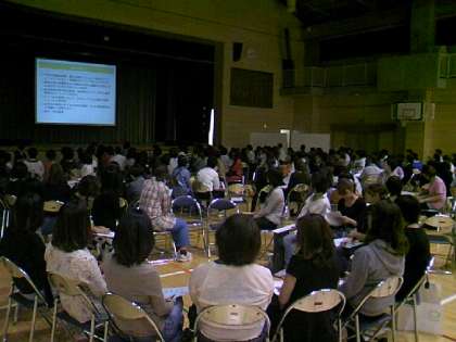 10月16日(水)午後、体育館で100名以上の保護者、教職員が集まり、単P研修会を開催しました。