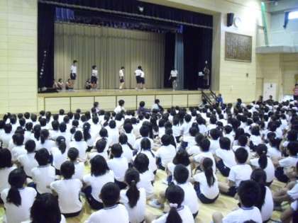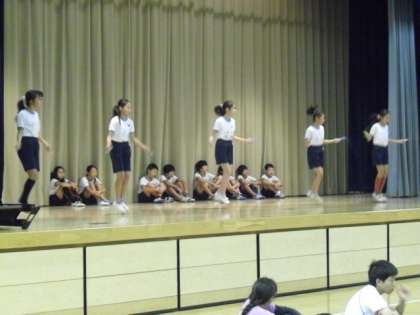 模範演技として、6年生の代表児童が、すばらしい縄跳びの技を披露してくれました。