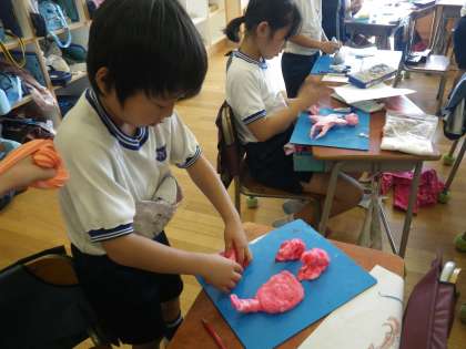 2年生 展覧会にむけて 5 公開日 2013/11/06 更新日 2013/11/06 2年 今週は共同作品を各学級で作っています。 学校の古民家前にある池に、将来はどんな生き物がやってくるでしょうか? いろいろな想像をしながら、紙ねんどで一生懸命作っています。 いいね(0)
