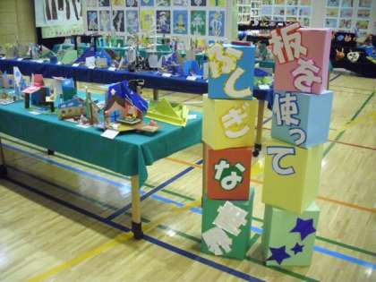 11/14〜 展覧会・4年 公開日 2013/11/14 更新日 2013/11/14 4年 展覧会、4年生の出品は、平面作品「キラキラフラワー」、立体作品「板を使って不思議な世界」、共同テーマ作品「みんなの笑顔(ステンドグラス風に)」です。 いいね(0)