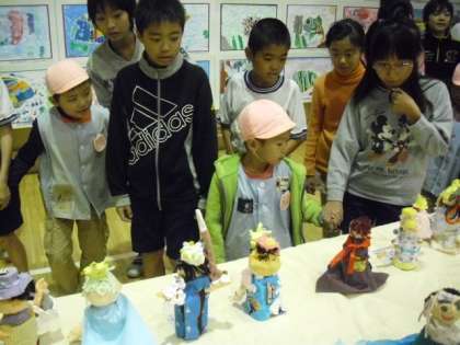 5年生がやさしく案内し、楽しそうに作品を見てくれました。
