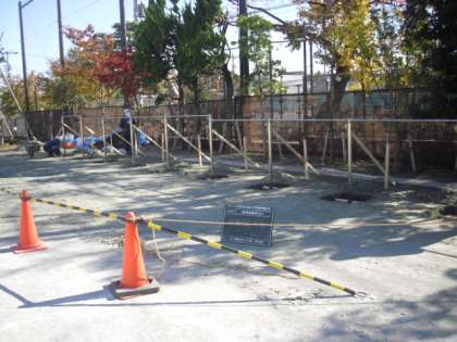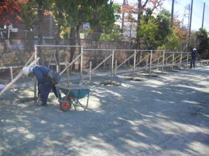 これまでの鉄棒の西側、ベンチをはさんだとなりに、中・高学年向きの高さがある鉄棒を増設します。