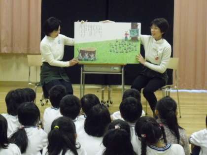 12月3日(火)、図書ボランティア「虹」の皆さんが、1年生におはなし会を開いてくれました。