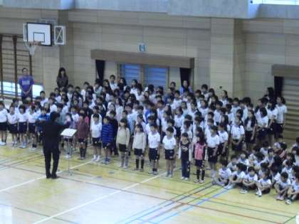 その後、全校児童で、「心から心へ」を斉唱しました。