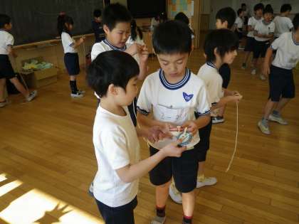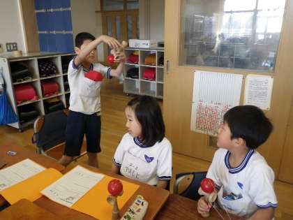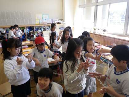 2年生 生活科 「昔あそび」 その1 公開日 2014/01/21 更新日 2014/02/06 2年 いま2年生は生活科の時間に「昔あそび」に取り組んでいます。 5クラスの児童が入り混じって、様々な遊びに挑戦しています。 今月末には地域の方をお招きして、「昔あそび」のこつを教えていただく予定です。 今回は「けんだま」「あやとり」「こま」をしている児童を紹介します。互いに教え合っている姿が多く見られました。 いいね(0)