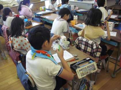 虫歯ができる過程についてのお話と、染めだし液を使った歯磨きの仕方の振り返りの体験をしました。