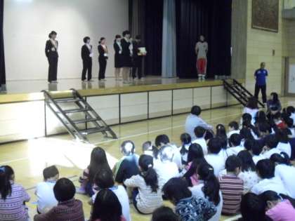 2月17日(月)の朝会で、日本女子体育大学の学生ボランティアの方々に感謝をする会を開きました。
