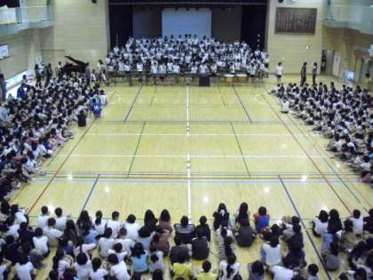 1年生〜5年生は、感謝とお祝の気持ちを込めて、出し物やゲーム、全校合唱で、6年生と楽しく過ごしました。