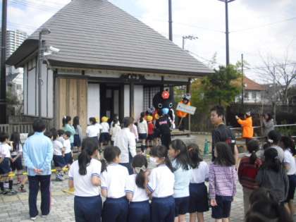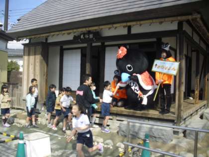 3月3日(月)昼休み、烏山地域キャラクター「からぴょん」が来校しました。