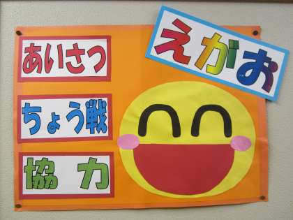 笑顔で気持ちのよい挨拶のできる高学年に、笑顔で意欲的にチャレンジできる高学年に、笑顔で互いを思いやり協力し合える高学年になってほしいと願っています。