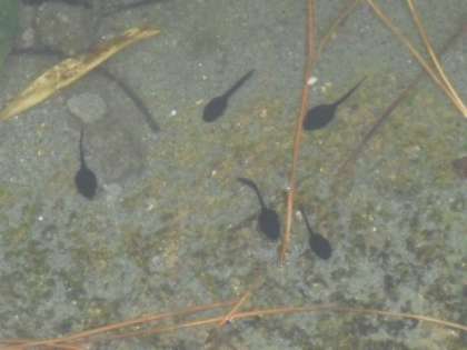 今、給田小学校の校庭の北西の藤棚には「ふじの花」がきれいに咲き、古民家前の池には「おたまじゃくし」が元気に泳いでいます。