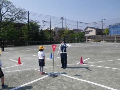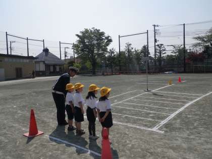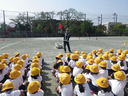 交通安全教室(横断歩道) 公開日 2014/04/25 更新日 2014/04/25 1年 成城警察署、烏山北駐在所の程原さん、PTAの皆さんのご協力を得て交通安全教室が開催されました。 1年生は横断歩道の渡り方や、歩道の歩き方を指導していただきました。 登下校の際や、近所に遊びに行く際などに今日の交通安全教室のことを思い出して、安全に歩行してほしいと思います。 いいね(0)