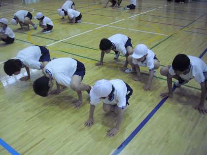 ここでは、6年生が1年生に給田体操を教えるという内容でした。