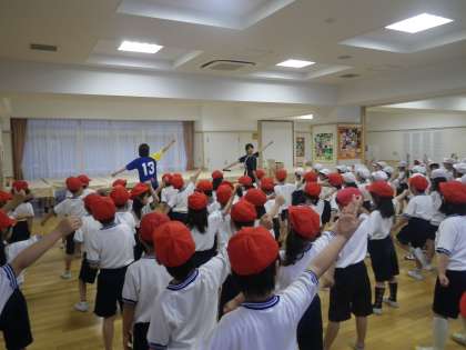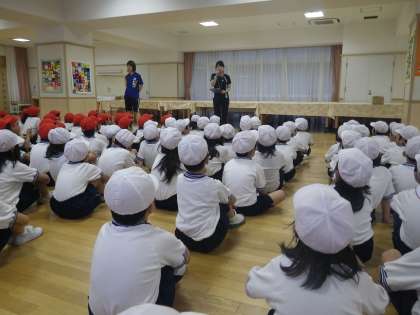 1年生 運動会にむけて その1 公開日 2014/05/14 更新日 2014/05/14 1年 入学してからひと月以上が経ち、1年生も学校に慣れてきました。5月下旬に行われる運動会にむけて練習も始まっています。 先日は雨天のため校庭で練習ができませんでした。そこで場所をランチルーム(兼:多目的室)に移してダンスの基本練習をしました。 担当の先生をしっかり見て、話が聞けているところが立派です。楽しく笑顔で練習に取り組んでいます。 いいね(0)
