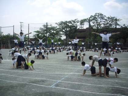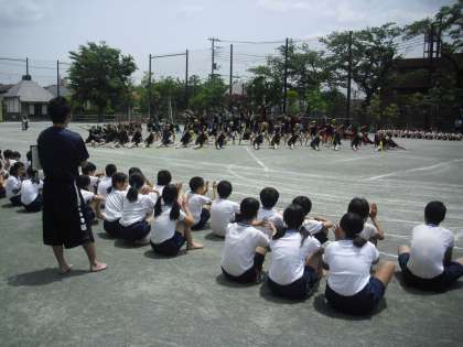 5・6年生は、相互に、「ソーラン節」「組体操」を見合いました。