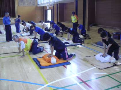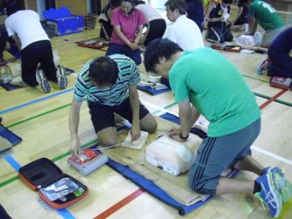 水泳のシーズンを前に、皆、真剣に、心肺蘇生の方法、AEDの使い方について実技を交えて受講してきました。