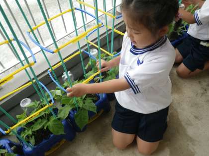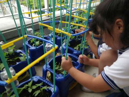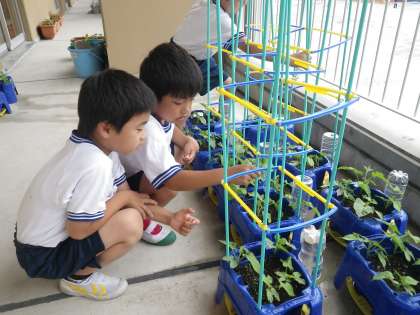 1年生 アサガオ 公開日 2014/06/05 更新日 2014/06/05 1年 ついこの間、「芽が出た!」と喜んでいましたが、あっという間につるが伸びてきました。 今日は植木鉢に支柱を取り付けました。 1年生は毎日欠かさず植木鉢に水をやって、大切にアサガオを育てています。支柱を立てたことでつるが絡んで、ますます生長していくと思います。 いいね(0)