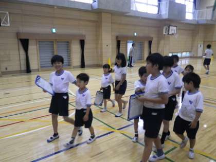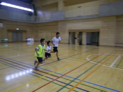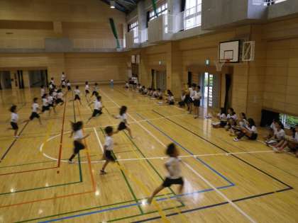 今日は6年生といっしょに体育館で「シャトルランニング」を実施しました。