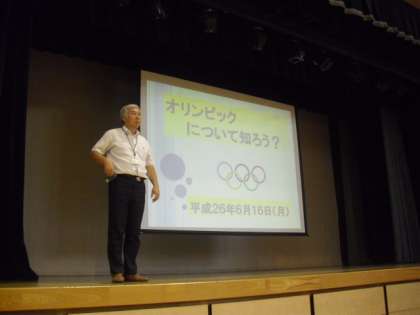 6月16日(月)児童朝会で、校長から全校児童に向け、本校が今年度、オリンピック教育推進校であるという説明をしました。
