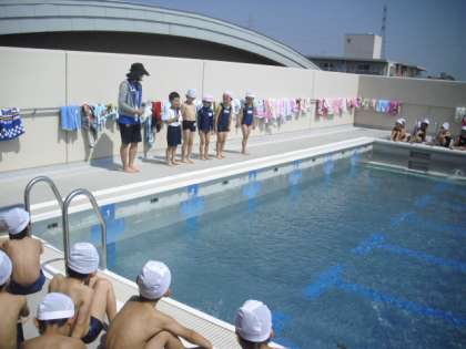これから、各学年でプール開きを行い、9月10日まで、プールでの指導をおこないます。