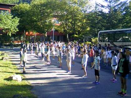 6年 日光3日目 その1 公開日 2014/08/06 更新日 2014/08/06 6年 ●朝の体操。昨夜はしっかり眠れたようです。足が重いという子も…。 ●閉園式 ホテルの方々にはお世話になりました。予定より少し早めに出発します。 いいね(0)