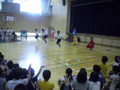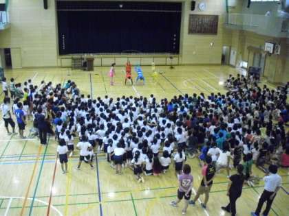 9月12日(金)5時間目、2〜4年生は、体育館で、なわとび講習・ジャンプスクールの見学・学習をしました。