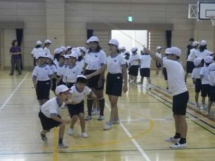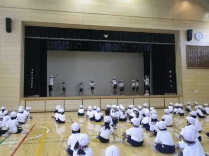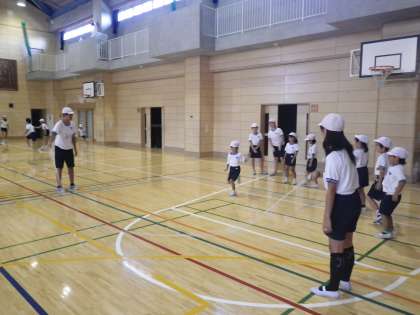 やさしい6年生 公開日 2014/09/13 更新日 2014/09/13 1年 いま給田タイム(体育朝会)では、長なわに挑戦しています。 1年生にとっては、はじめての長なわです。6年生が毎回体育館でとてもやさしく教えてくれています。 先日は体育館のステージで手本を見せてくれたり、長なわを回してくれたりして、上手に跳ぶこつを1年生に伝えてくれました。 大好きな6年生といっしょに長なわを跳ぶことができるので、1年生は給田タイムを毎回楽しみに待っています。 いいね(0)