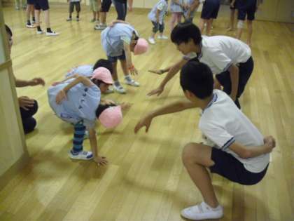 9月17・18日の2日間、給田幼稚園の年長組の皆さんが、給田小学校に来校し、5年生から「ソーラン節」の踊りを教えてもらっています。