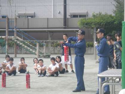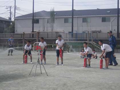 10/10 避難訓練 公開日 2014/10/10 更新日 2014/10/10 行事 本日の避難訓練は、火事の際の避難の仕方を訓練しました。 校庭に全校児童が集合したあと、成城消防署の方から消火器の使い方について指導がありました。 本校の職員、6年生児童が水入りの消火器で訓練を行いました。 いいね(0)