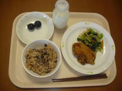 10/17 開校記念日・給食 公開日 2014/10/17 更新日 2014/10/17 給食 10月17日の給食は、明日の給田小学校・開校記念日をお祝いした特別献立でした。 メニューは、赤飯、鳥のから揚げ、野菜のからしじょうゆかけ、ピオーネ、牛乳でした。 学校中の皆で、お赤飯を食べ、お祝いしました。 いいね(0)