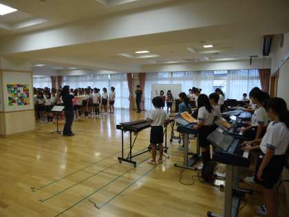 3週間前から、音楽隊が朝や休み時間に練習してきました。