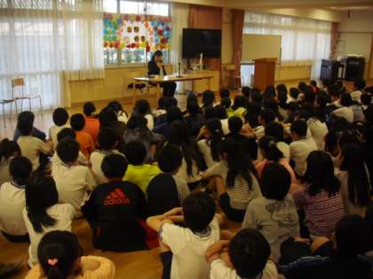 12月19日(金)5時間目、ロンドンオリンピック銅メダリストの方を講師として、6年生の総合的な学習の時間を行いました。