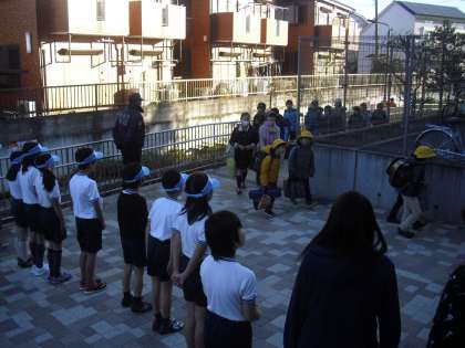 本校の正門、北門では、あいさつボランティアの児童、烏山中学校の生徒、教員、地域の皆様が、登校する児童と挨拶を交わしてくれました。