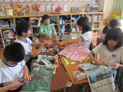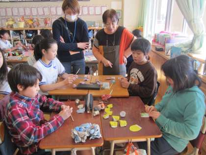 地域の方に協力をしていただいて、新聞紙とちらしで作りました。