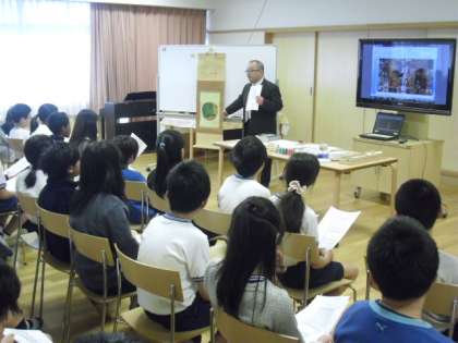2月25日(水)、6年生の図工の授業で、美術館学芸員の方をゲストティーチャーに招いて、古美術の鑑賞教室を開きました。