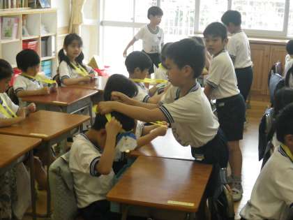 4/21 2年 1年生を迎える会に向けて 公開日 2015/04/21 更新日 2015/04/21 2年 明日は1年生を迎える会です。 2年生はドラえもんのメダルを手作りしました。 今日は1年生の教室に行き、「このメダルをかけて迎える会に来て下さい」と声をかけて手渡ししてきました。 1年生がとても喜んでくれました。 いいね(0)