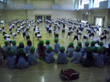 5月15日(金)、給田幼稚園の年長クラスの皆さんが、5年生のソーラン節の見学に来校しました。