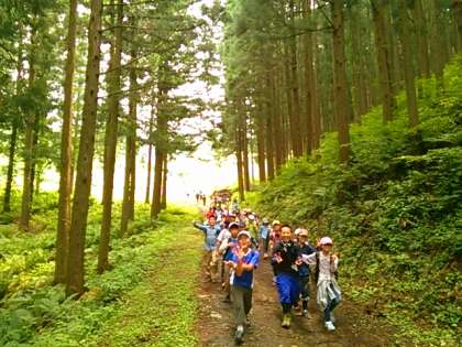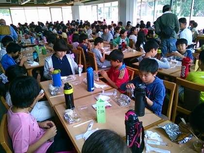 2日目の午前中は、ハイキングとスポーツ大会をしました。優勝は、女子1組、男子4組でした。画像は、ハイキング、スポーツ大会、昼食です。