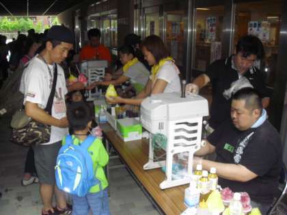 校舎の部では、かき氷、カレーライスなどの飲食コーナー、起震車、煙中訓練などの防災コーナー、体の測定、くじ引き、ゲーム等の教室コーナーなど、多くの催しで賑わいました。