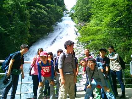 ハイキングの途中で昼食を食べ、湯滝の見学をしました。