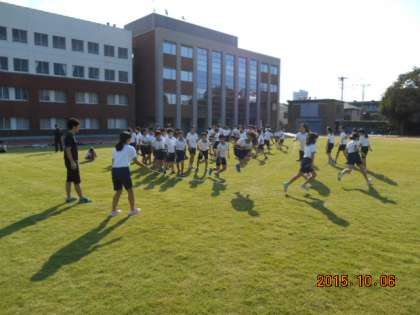 10月6日(火)の朝、6年生は、日本女子体育大学のグランドへ、連合運動会の練習に出かけました。