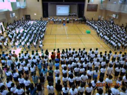 はじめに、2年生が「山のポルカ」を発表してくれ、その後、全員で「ありがとうの花」を合唱しました。