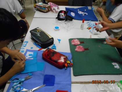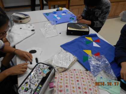 展覧会へ向けて、6年生・家庭科では、クッションの作成をしています。