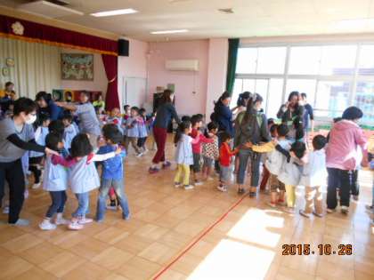 10月生まれのお友達をお祝いし、お楽しみは、ジャンケン列車でした。